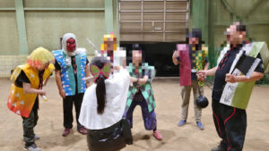 感謝祭は野菜が無事収穫できたことを神様に感謝するお祭りで、主催者側が神様や妖精さんに扮して祭りを進めてくれました。参加スカウトや指導者達はプログラムで作成した法被+団でそれぞれ事前に作成したコスチュームで仮装して参加するというスタイルだったのですが、札幌第22団のクオリティーは突出していました。もはや別世界。まさかの主催者越えの声もあったとか、無かったとか。とにかく本気すぎる。この感謝祭1時間のためにどれだけの時間を費やしたのか。変幻自在の無惨様といえども、このレベルにはさすがに驚いたのでは!?