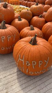 芋掘りのあとは、ハウスの観賞用かぼちゃを拝見しました。後から塗ったのか?と思ってしまうほどの色とりどりの見事なかぼちゃさん達。スーパーマリオのキノピオのようなキノコっぽいかぼちゃもあって、スカウトたちも驚いていました。食べるためではなく、見て楽しむためのかぼちゃさん。かわいくて素敵でした。