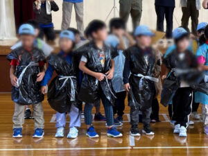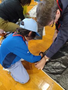 翌朝、嘘のようにすっかり雨は止んでいました。二日目は、屋内での法被づくりの後、アウトドア活動を行いました。