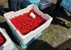 まずは歩いてトマト農家さんに向かいます。途中他の組のスカウトを見つけると、『J!!A!!』。大声が静かな町にこだまします。怪しいですね~。おかしいですね~。でも、スカウトたちが本気でやると非常に素敵なんです。さあ、あなたも一緒に『J!!A!!』。そうこうしているうちに目的地のビニールハウスに到着。農家さんから説明を受けた後、収穫体験という名の超旨トマトの食べ放題ツアーとなりました。というのも、今年の異常な高温のため、トマトにも悪影響が出てしまい、農家さん的には既にハウスの中には高品質の作物は残っていない状態だということで、収穫体験は難しいということでした。事前に良いものを厳選、収穫をしてくれ、外の箱に美しく並べてくれていました。そんな貴重なものをありがたくいただくスカウトたちの中に、誰よりも前に出て食べまくっている人が。そうです。うちの見習い君です。いただいたワンカップだけでは飽き足らず、「別に食べてもいいけどおいしくないよ。」とお話されていた、ハウスの中のトマトにもどんどん挑んでいきます。うまい!うまい!うまい!煉獄さんばりの食いっぷり。親として恥ずかしさしかありません。まあでも、あそこまで行けば清々しいです。遠慮が一切感じられません。ただ、正直、気持ちはわかります。実は私もこっそりハウス内のものをいくつかいただきましたが、本当においしかったです。これをダメだという農家さんの厳しさ。凄すぎます。