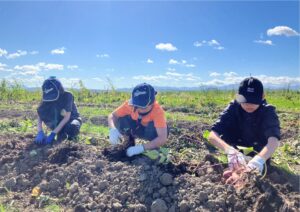 法被づくりの後は、外に出ます。午前中のビーバーさんは、トマト、サツマイモの収穫体験です。