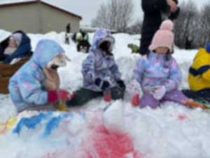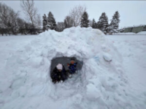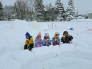 各々で、かまくらを作ったり、スコップやバケツを使って遊ぶ子、シャボン玉をする子、